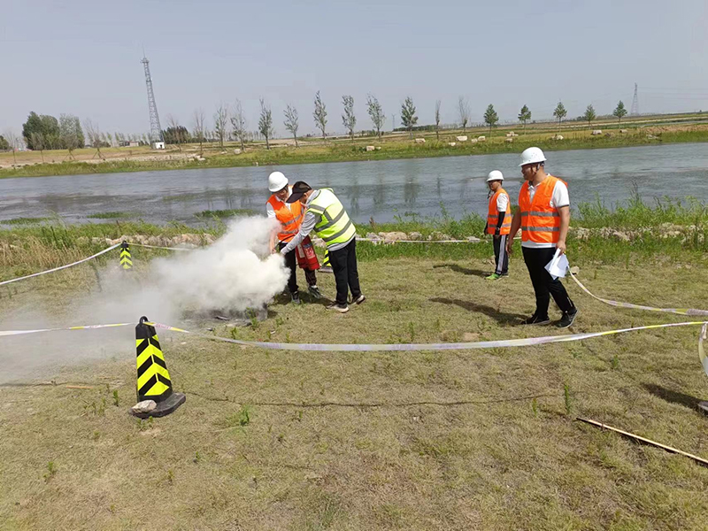 模擬設備起火現場,開展滅火動作,并講滅火器使用方法,介紹噴射要領,滅火動作后觀察火情是否復燃;