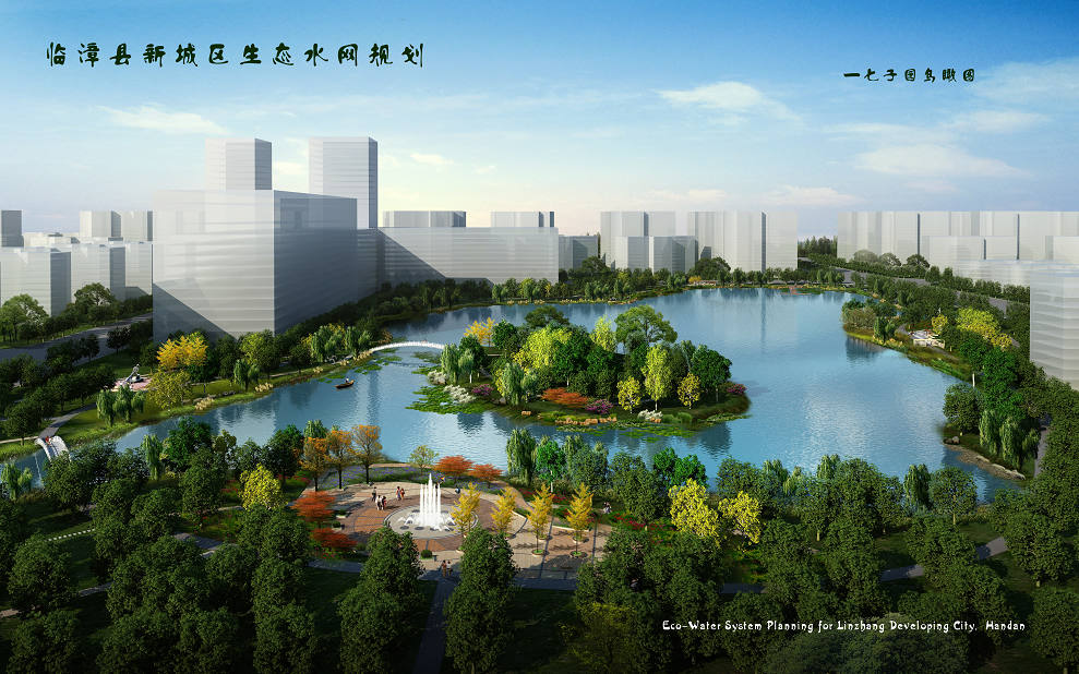 通過增加城市水面、增加城市綠地的方式提高城市生態(tài)環(huán)境質(zhì)量,統(tǒng)籌規(guī)劃建設(shè)“綠網(wǎng)、綠帶、綠點”,并寓鄴城文化于綠化之中,優(yōu)化綠化布局,提升綠化品位,突出城市特色。在城市水面上,將民有南、北干渠的水引入城區(qū),將城區(qū)內(nèi)原有的河流、坑塘連接起來,沿途以人工湖作點綴,打造秀美水景,依托城區(qū)內(nèi)河流水系、城市綠化帶及城市主題公園,再現(xiàn)臨漳歷史文化特色。實現(xiàn)“北方水城,具有古鄴文化特色的園林城市”這一風(fēng)貌特色。